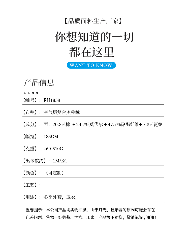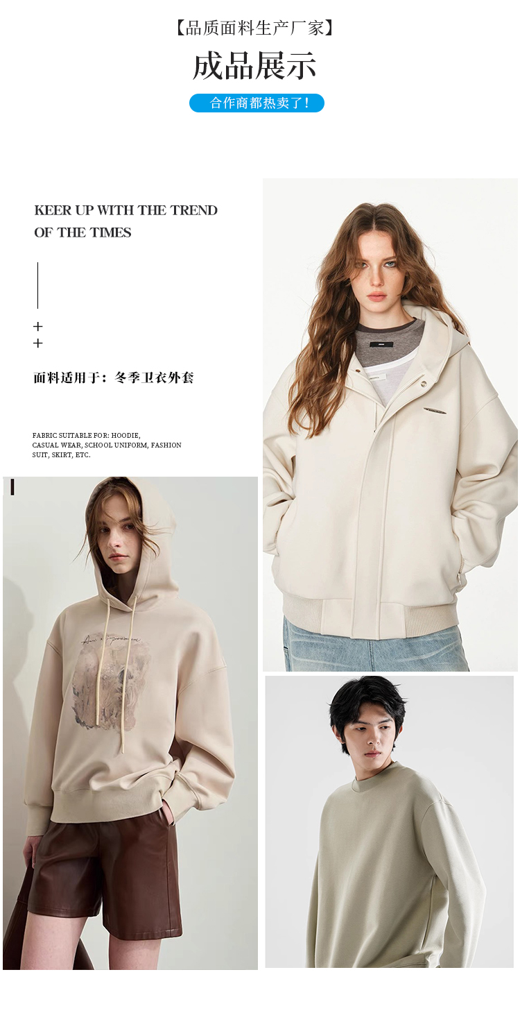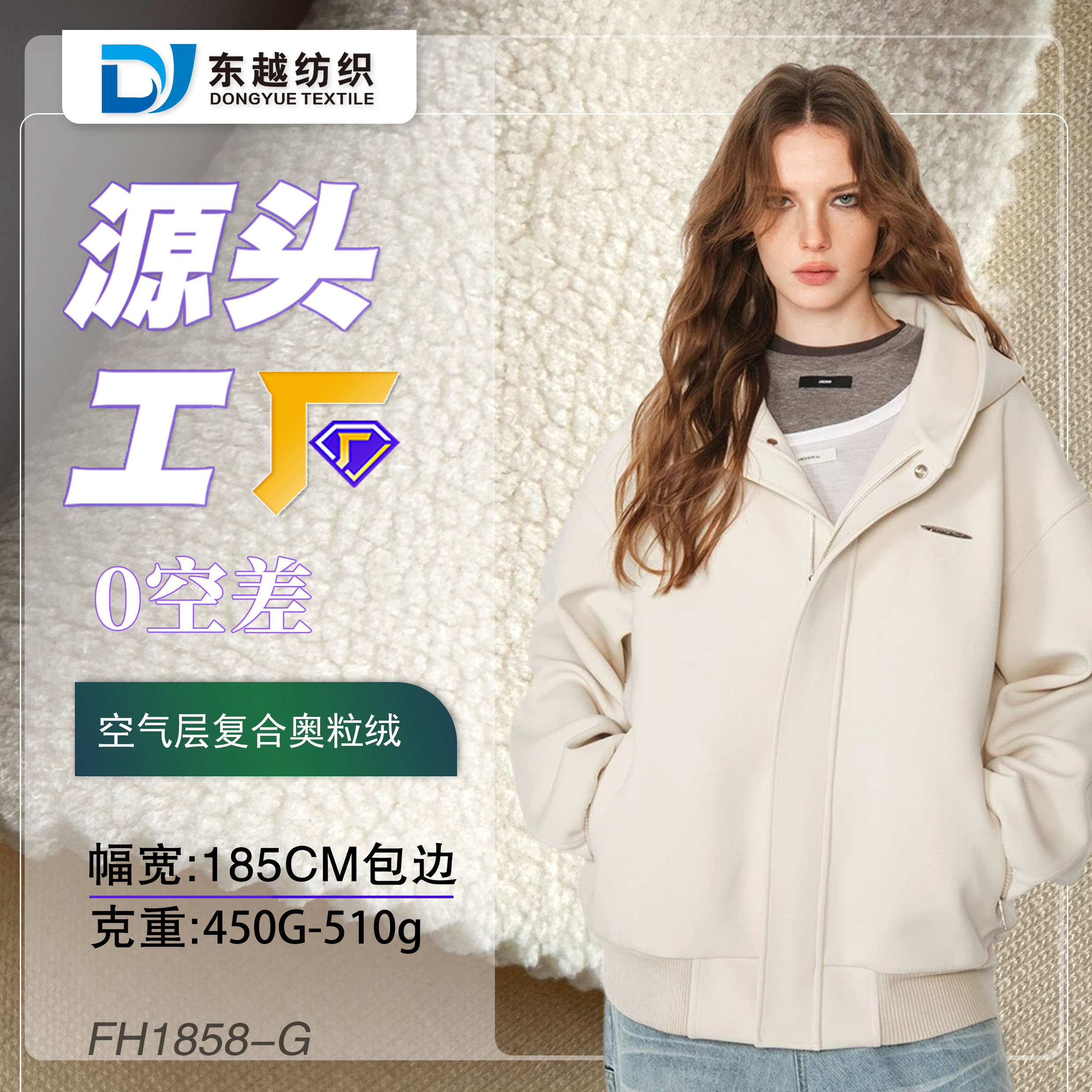 • FH1858-G 冬季加绒外套面料空气层复合奥粒绒卫衣布料颗粒绒针织厂家直销